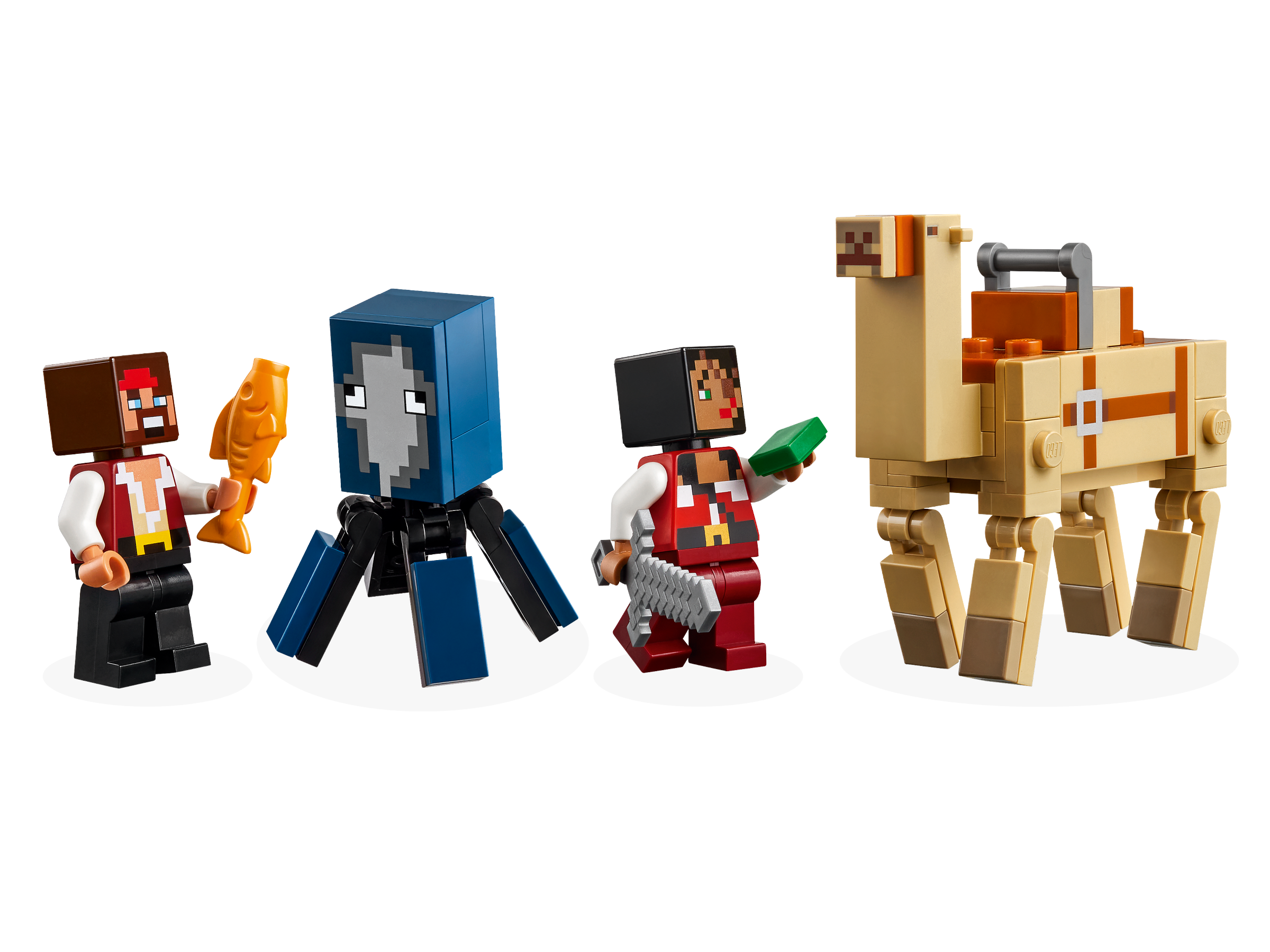 Le set inclut plusieurs personnages Minecraft® qui prennent vie sur le navire et l’île, permettant de jouer des scénarios d’exploration, de combat ou de coopération. Les interactions entre les personnages et les structures permettent de stimuler l’imagination et de créer des histoires originales.