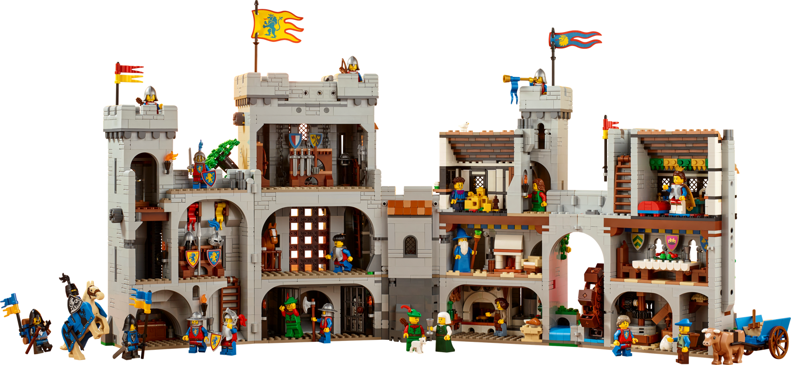 - 16 minifigurines, dont des chevaliers, une reine, un archère et des villageois pour inventer des histoires épiques.